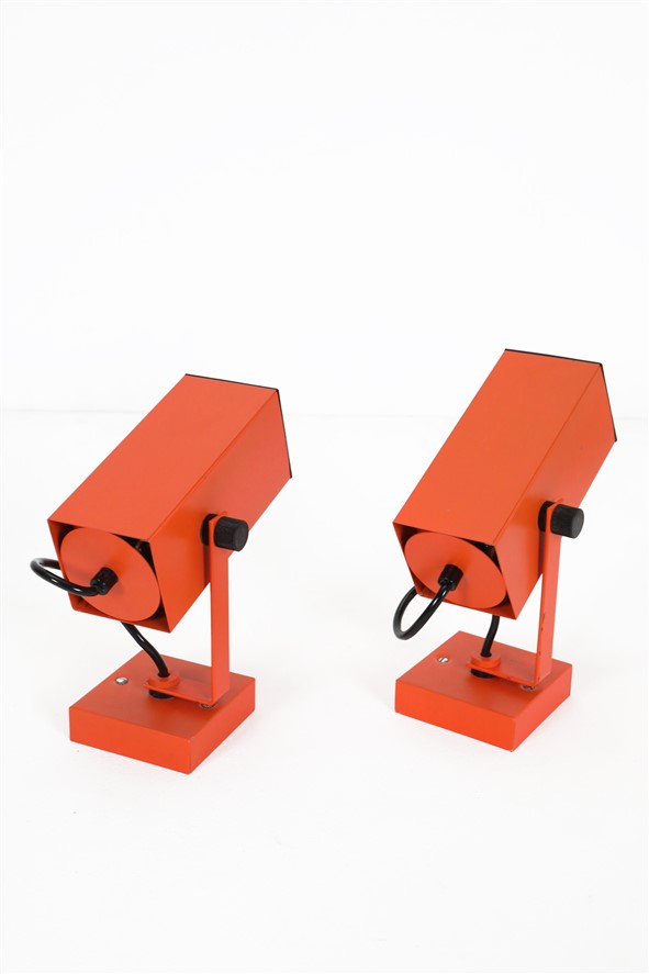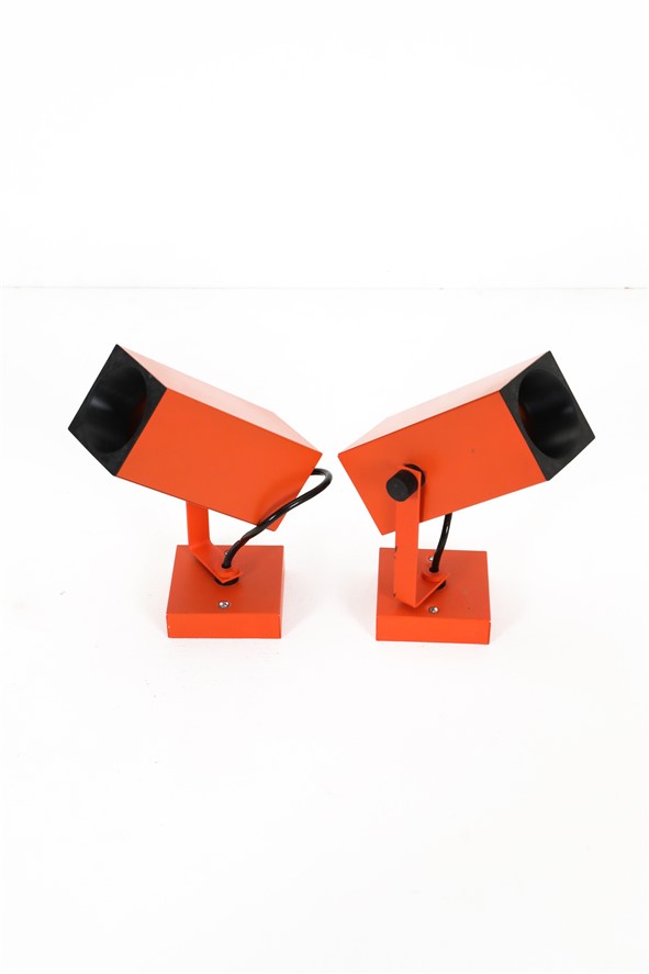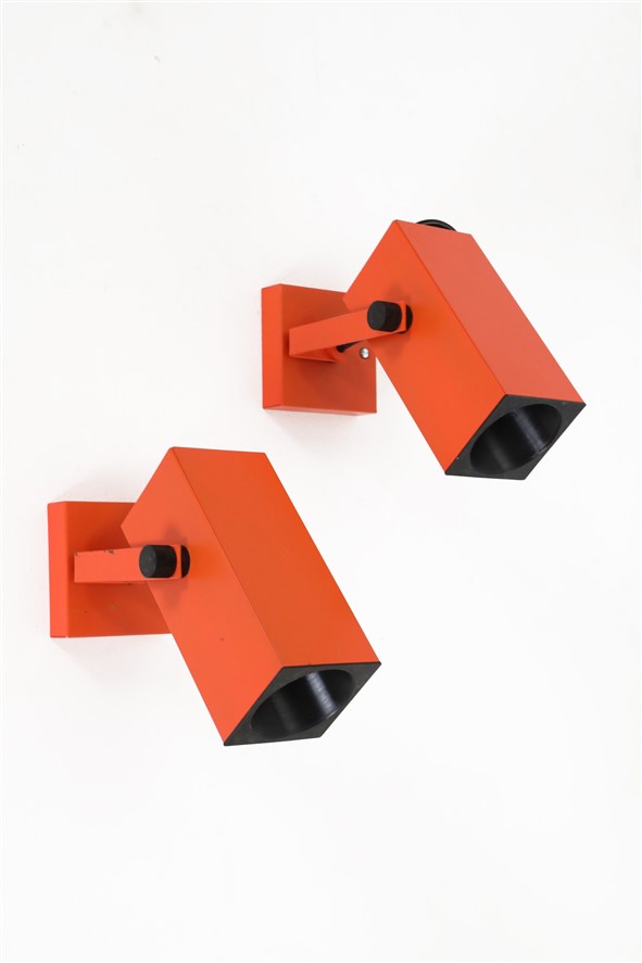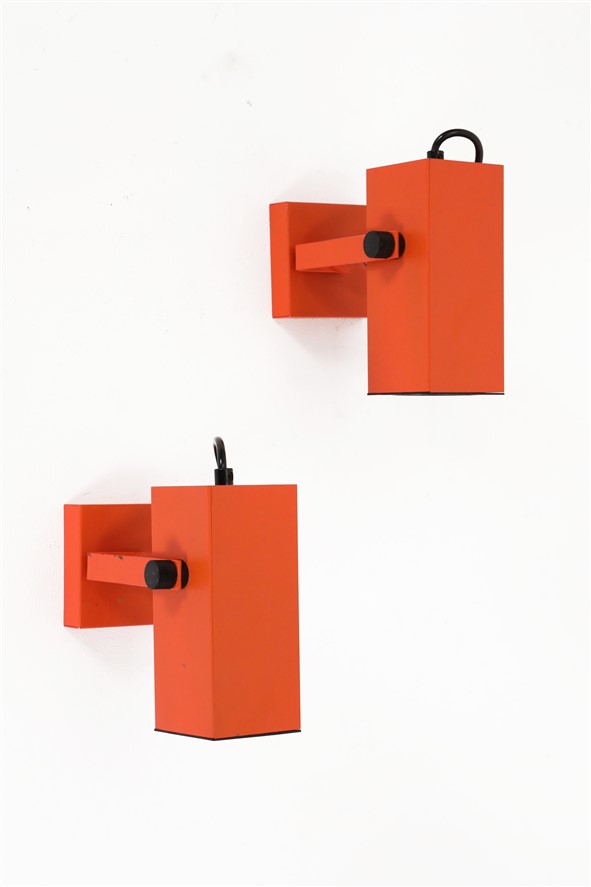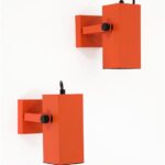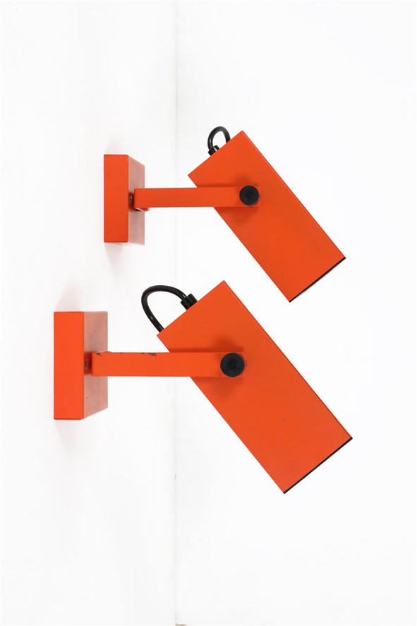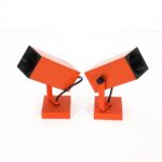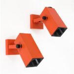 Set of 2 square Space Age wall lights / spotlights / by Staff / orange / mid-century modern design / 1970s