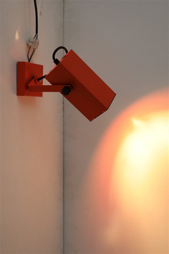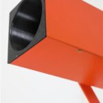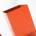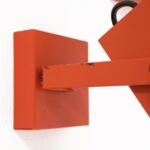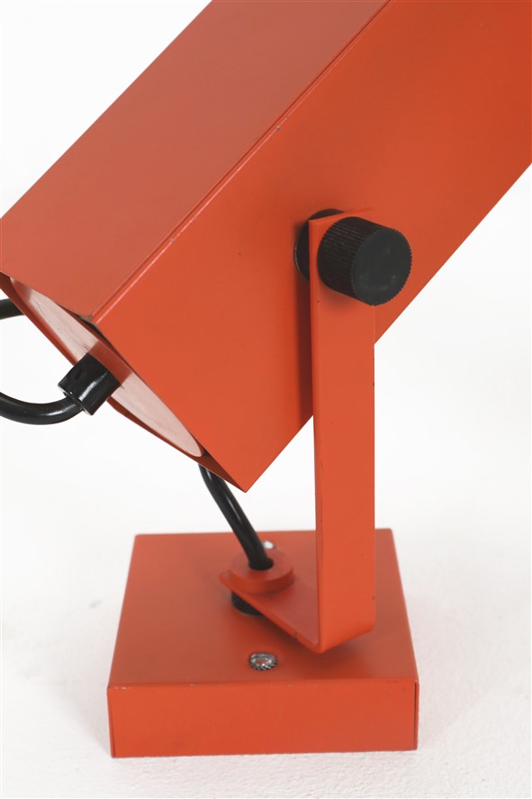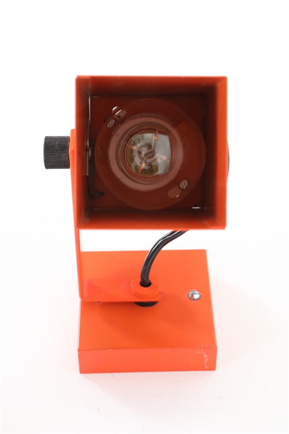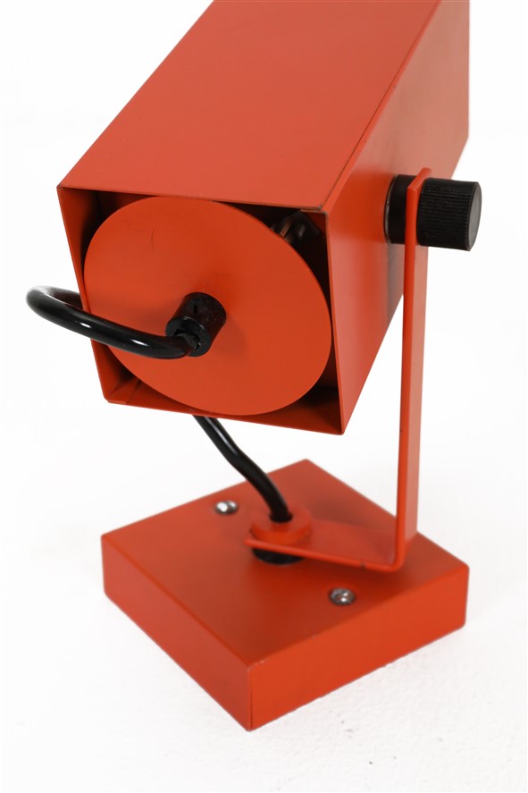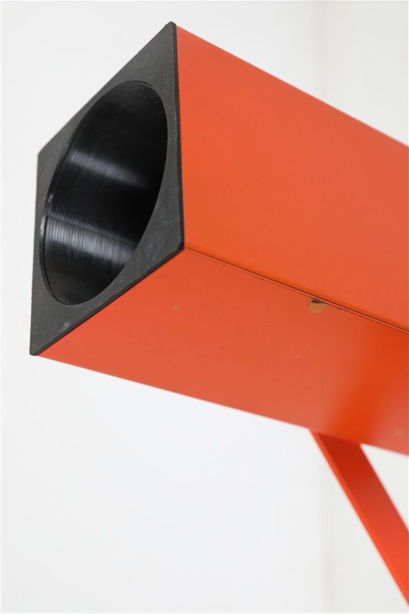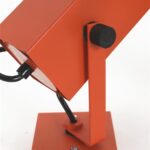 1970s, Staff, Lemgo – the German premium manufacturer. Architectural wall lights/spots in space-age style (also suitable for ceiling mounting). Original paint in a rich, unfaded red-orange. Very high-quality workmanship. Light housing and base made of steel, removable anti-glare inserts made of heat-resistant black plastic. E27 ceramic socket (110-250V, can be used worldwide). Overall dimensions: approx. 17 x 10 x 18cm (height, width, depth). The lamps are suitable for use with classic and modern (LED) E27 light bulbs. They come with 230V LED standard light bulbs in warm white. When using standard light bulbs, the light is warmly colored by the orange-colored inner housing (see first photo – switched on). When using reflector bulbs, the light is emitted neutrally and in a concentrated beam (see second photo – switched on). Used items with only a few signs of aging/use: Only a little paint abrasion. See close-up photos. Delivery without power cord. For connection to cable outlet. However, it would also be possible to connect a power cord (with switch). These are the original photos of the items for sale. Nevertheless, the colors may vary slightly as they are displayed differently on different devices/screens.