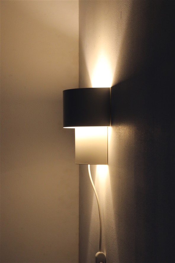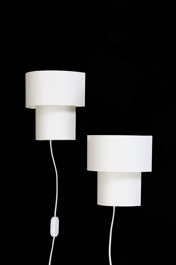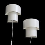 Postmodern wall lights from Nordlux, Denmark, from the 1980s. White painted sheet steel (original paint). Dimensions approx. 18 x 18 x 10cm (height, width, depth). E14 sockets (110-250V, can be used worldwide). The lamps are suitable for use with classic and modern (LED) light bulbs. Each comes with approx. 1.70 m cord, cord switch (design: Achille Castiglioni), Euro plug, and energy-saving 230V LED light bulb in warm white. Used items in very good condition. Only minimal signs of aging/use. See photos. These are the original photos of the items for sale. Nevertheless, colors may vary slightly as they are displayed differently on different devices/screens.