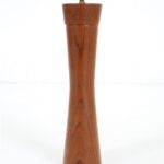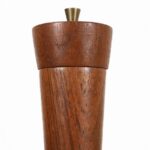1960s–1970s, Denmark, solid teak pepper mill. Dimensions: approx. 21 x 5 cm (height, diameter). Pleasant, smooth, satin-matte wood finish. In very good condition despite its age. Only slight signs of wear.