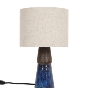 1960s-1970s, Michael Andersen, Bornholm, Denmark. Total height approx. 46.5cm. Handcrafted lamp base (fireclay technique). High-quality new lampshade in linen + viscose (plain weave), diameter: 30cm. New E27 Bakelite socket, textile cable with new switch and Euro plug. Comes with bulb in warm white. Used item. No defects. Only slight signs of wear due to age. See photos. These are part of the description. These are the original pictures of the items for sale. Nevertheless, the colors may vary slightly as they are displayed differently on different devices / screens.