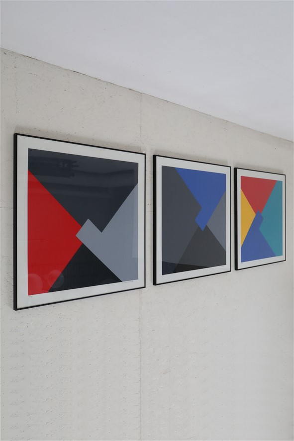 Peder Meinert (born 1951 in Denmark), 1989. Signed serigraphy / silkscreen print. Limited edition: 7 of 46. High-quality Nielsen aluminum frame, finished in black satin, with real glass. Dimensions with frame approx. 70x70x2 cm (height, width, depth). The two additional Peder Meinert silkscreen prints shown in the last photo are not included in this offer and can be purchased separately (while available). Used item. Only minor signs of aging/wear. Colors may vary, as each device/display renders colors differently.
