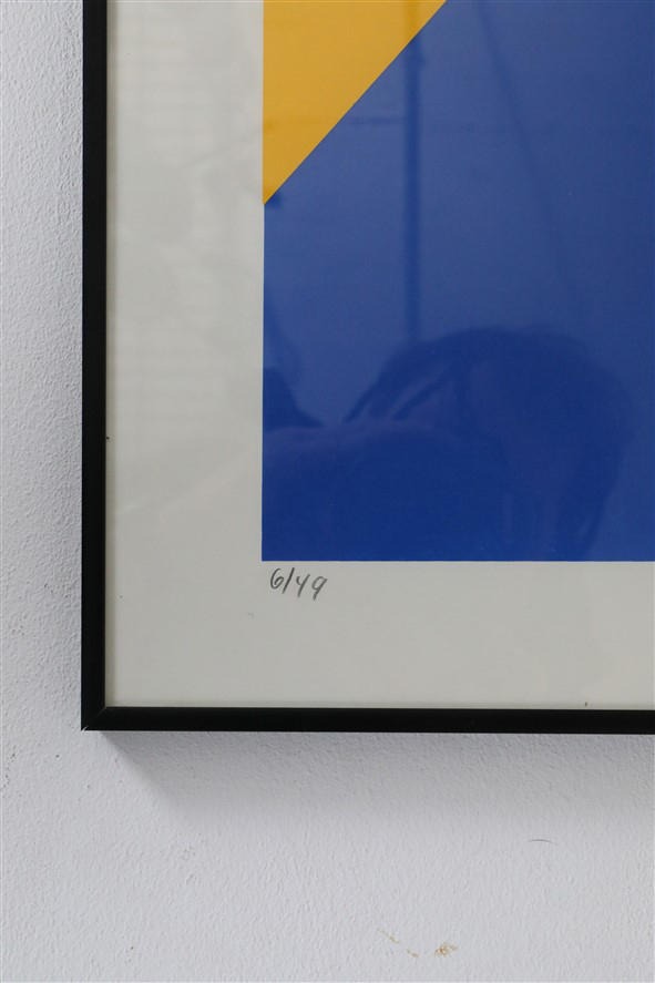 Peder Meinert (born 1951 in Denmark), 1989. Signed serigraphy / silkscreen print. Limited edition: 6 of 49. High-quality Nielsen aluminum frame, finished in black satin, with real glass. Dimensions with frame approx. 70x70x2 cm (height, width, depth). The two additional Peder Meinert silkscreen prints shown in the last photo are not included in this offer and can be purchased separately (while available). Used item. Only minor signs of aging/wear. Colors may vary, as each device/display renders colors differently.