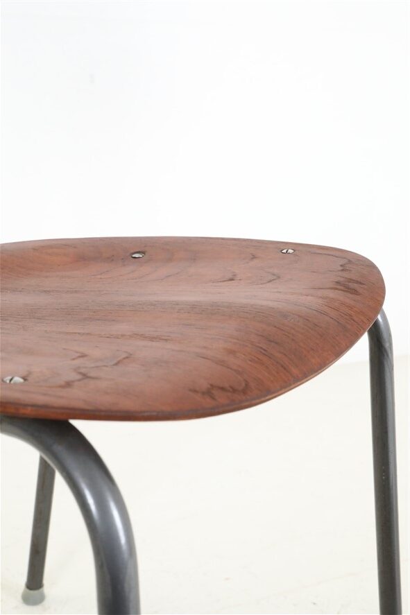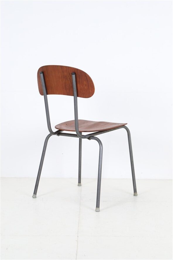 1960s/1970s, Denmark. Seat and backrest made of teak in laminated construction, high-quality restored and sealed with a satin-matte finish. Very pleasant, smooth surface. Tubular steel frame. Dimensions: approx. 79 x 49 x 52 cm (height, width, depth). Used item. Despite its age, only slight signs of wear. See close-up photos. These are the original photos of the items for sale. However, colors may vary slightly as they are displayed differently on different devices/screens.