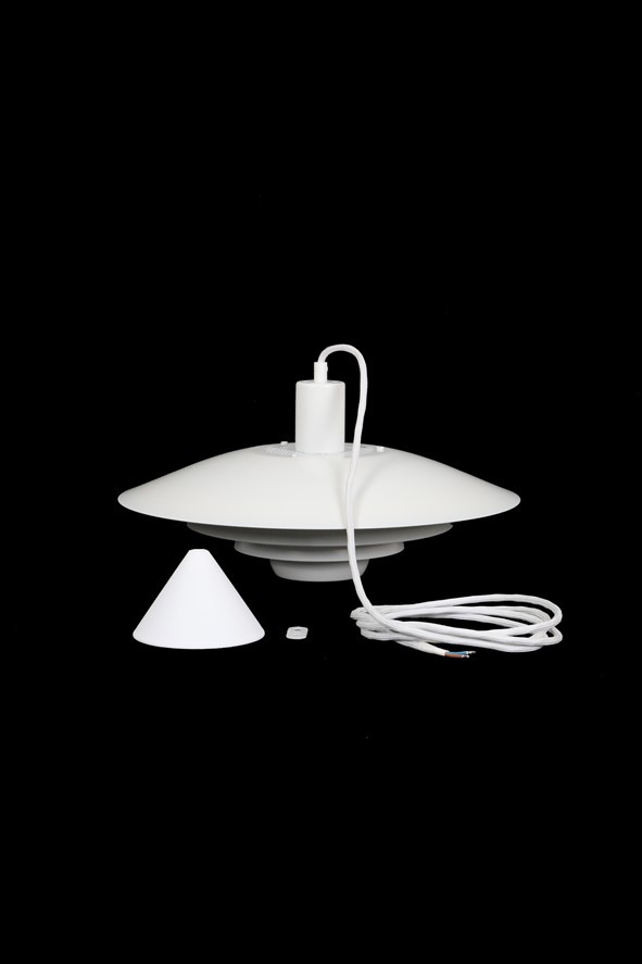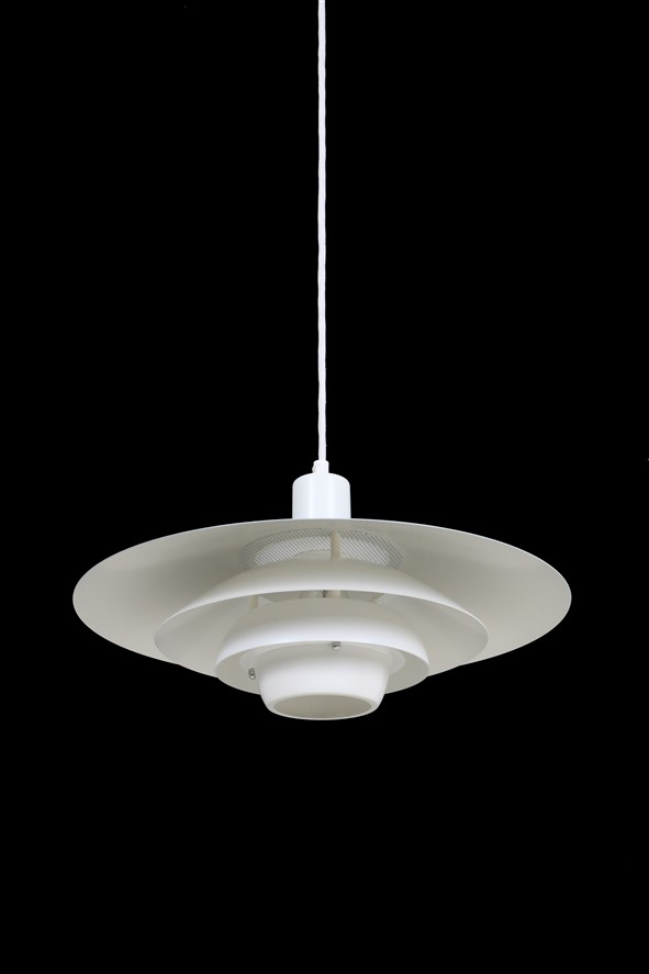 Set of 2 white minimalist Super-Light pendant lamps / David Mogensen / Danish Modern Design / 1970s