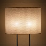 Mid-century modern floor lamp with seagrass lampshade / 1960s