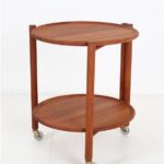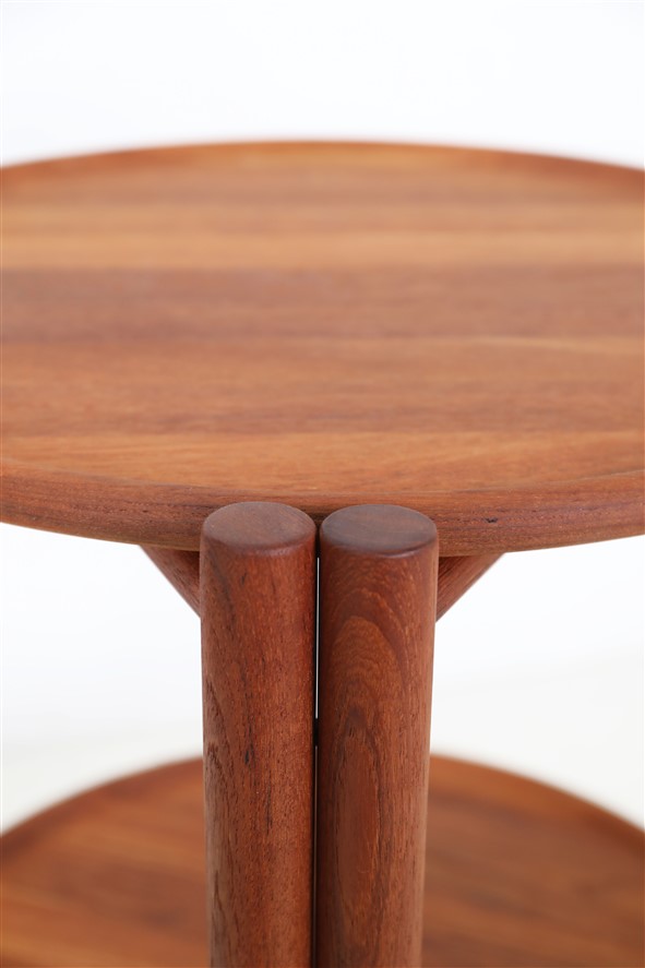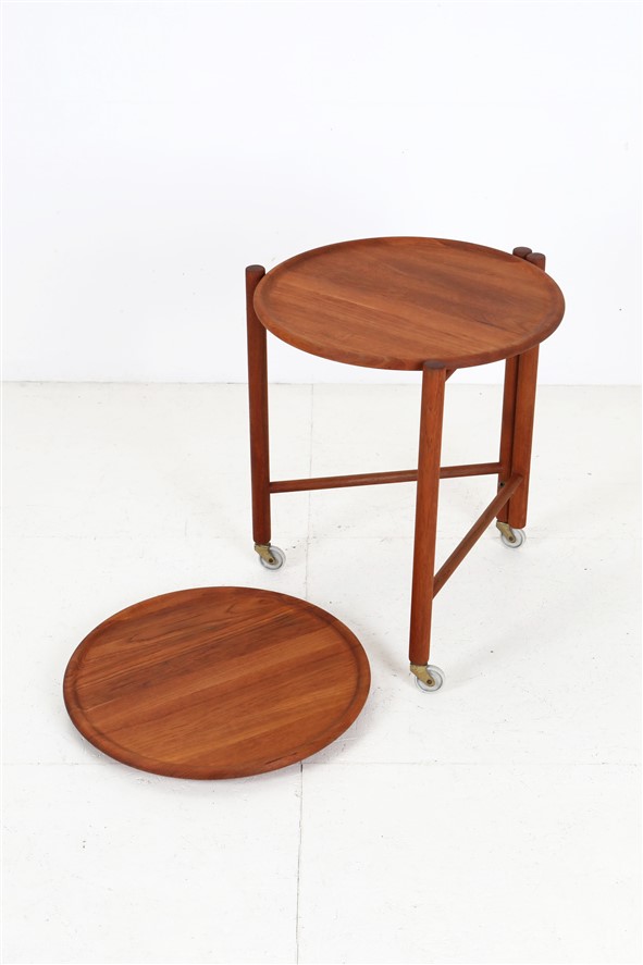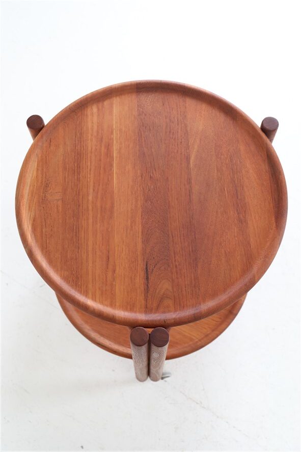 Round, foldable mid-century teak serving cart / attributed to Jens Quistgaard / “Lazy Susan” / Danish Modern Design / 1960s / 1970s