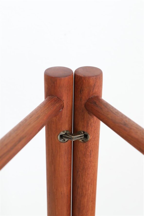 1960s–1970s, Denmark. Design attributed to Jens Quistgaard. Foldable serving cart with removable trays. One of them is rotatable (“Lazy Susan”) and mounted on ball bearings, allowing it to turn very smoothly. Materials: solid teak with brass fittings. Measurements: approx. Maße: ca. 57 x 48cm (height, diameter). Fully restored: All surfaces have been sanded and finished with a high-quality, natural oil blend. Pleasantly smooth surfaces. Pre-owned item in very good condition. Thanks to the restoration, there are only minimal signs of use. See close-up photos. These are the original photos of the items for sale. However, colors may vary slightly as they are displayed differently on various devices/screens.