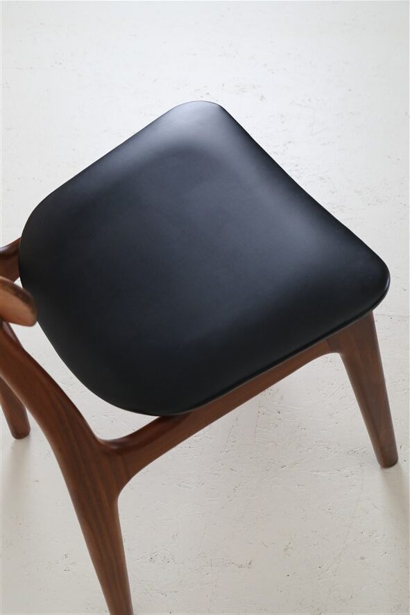 ACO Møbler / Erik Buck “310” teak chair / black leather / mid-century Danish modern design / 1960s / Buch