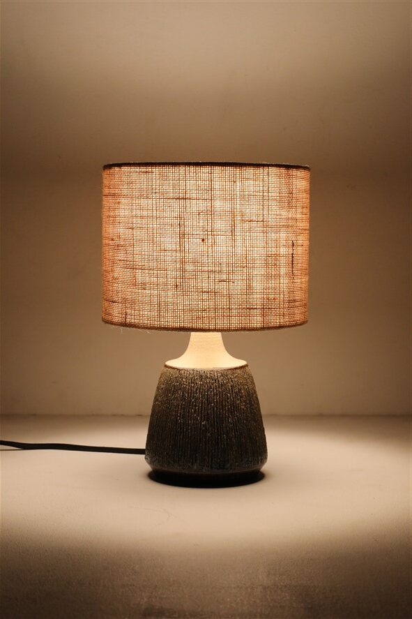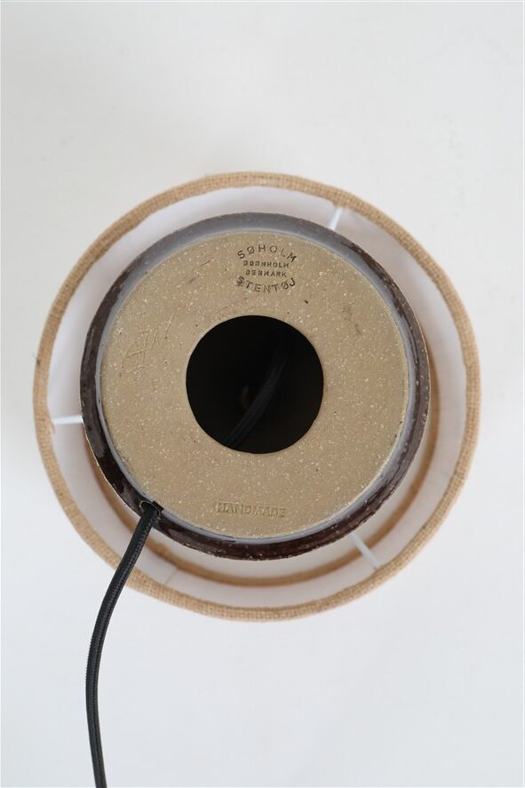 Handmade Søholm / Einar Johansen ceramic table lamp with jute lampshade / Mid Century Danish Modern Design / 1960s / 1970s
