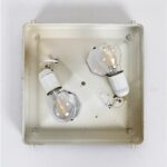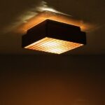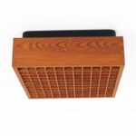 1970s flush mount ceiling lamp by Alda, Sweden. Big version. Perfect for low ceilings. Materials: pine wood in a warm color and steel (cream inside, black lacquered outside). The wood gives this lamp a pleasant, warm light. 2x E27 socket (110-250V, worldwide use). Overall dimensions: approx. 13 x 32 x 32cm (height, width, depth). The lamp is suitable for use with classic and modern (LED) light bulbs. Comes with two powerful, energy-saving LED bulbs in warm white. Used item. Despite its age, there are only a few signs of wear. See photos. No defects, no repairs. These are the original photos of the items for sale. However, colors may vary slightly as they are displayed differently on different devices/screens.