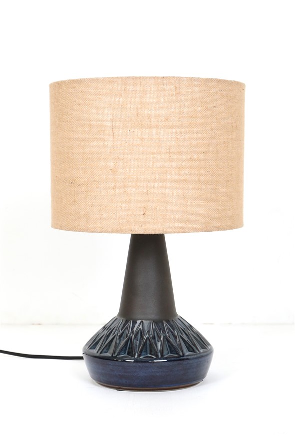 1960s-1970s Søholm, Bornholm, Denmark, design: Einar Johansen, stoneware/ceramic. Type “1058,” very rare. With a renewed, very high-quality jute lampshade (canvas weave). E27 bakelite socket (110-250V, worldwide use), special textile cord, that is approved for table lamps (approx. 2.10m), switch (design: Achille Castiglioni) and European bakelite plug. Overall dimensions: approx. 47 x 30cm (height, diameter). Used item. No defects. Like-new condition. See photos. These are the original photos of the items for sale. However, colors may vary slightly as they are displayed differently on different devices/screens.