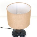 Große schwarze Hustadt Tischleuchte mit Jute-Lampenschirm / mid century modern design