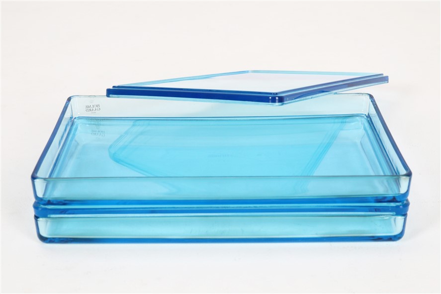 Große türkis-blaue „Thurø“ Glas-Boxen mit Deckel, Design: Rauff & Møldrup für Holmegaard, Red Dot Design Award Winner 2008, Dänemark. Nicht mehr in Produktion. Sammlerstück. Maße mit Deckel jeweils: ca. 3,5 x 28 x 17,5cm (Höhe, Breite, Tiefe). Innenmaße: ca. 2 x 27 x 16,5cm (Höhe, Breite, Tiefe). Gebrauchtware. Keine Defekte. Nur minimale Gebrauchsspuren in Form von leichten oberflächlichen Kratzern an der Unterseite (siehe Nahaufnahme). Dies sind die Originalfotos der zum Verkauf stehenden Artikel. Die Farben können jedoch leicht variieren, da sie auf verschiedenen Geräten/Bildschirmen unterschiedlich dargestellt werden.