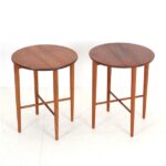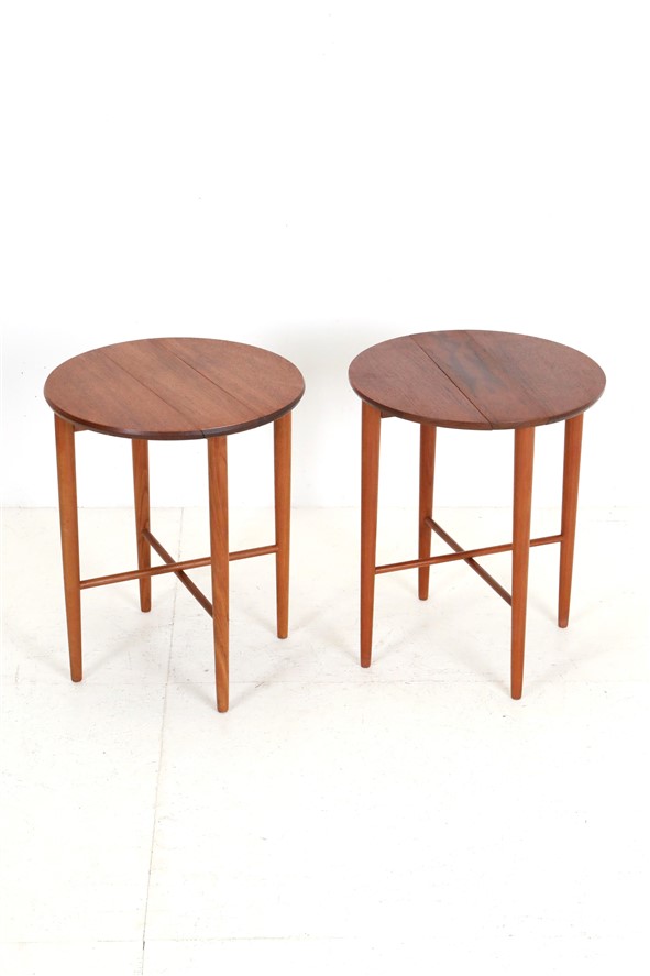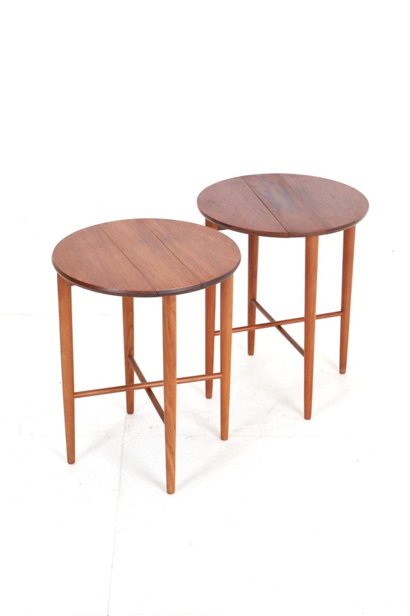 2er-Set runde Mid Century Teak-Beistelltische von Carlo Jensen für Poul Hundevad / 60er / Danish Modern Design / faltbar