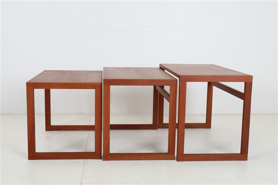3er-Set „#253“ Teak-Satztische von Kai Kristiansen / Mid Century Danish Modern Design / Minimalism / 60er