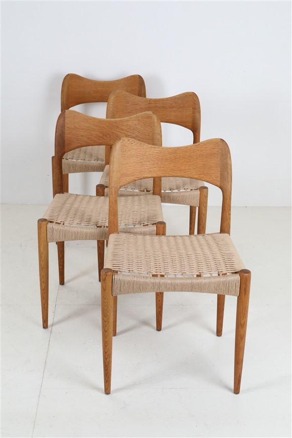 4er-Set neu geflochtene Papercord/Eiche-Stühle von Arne Hovmand Olsen für Mogens Kold / 60er