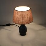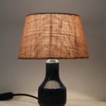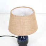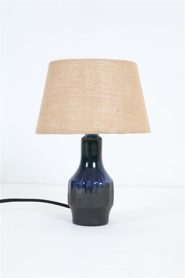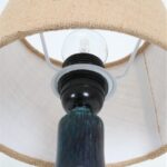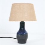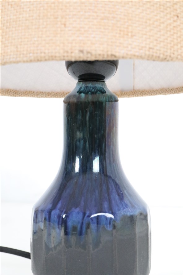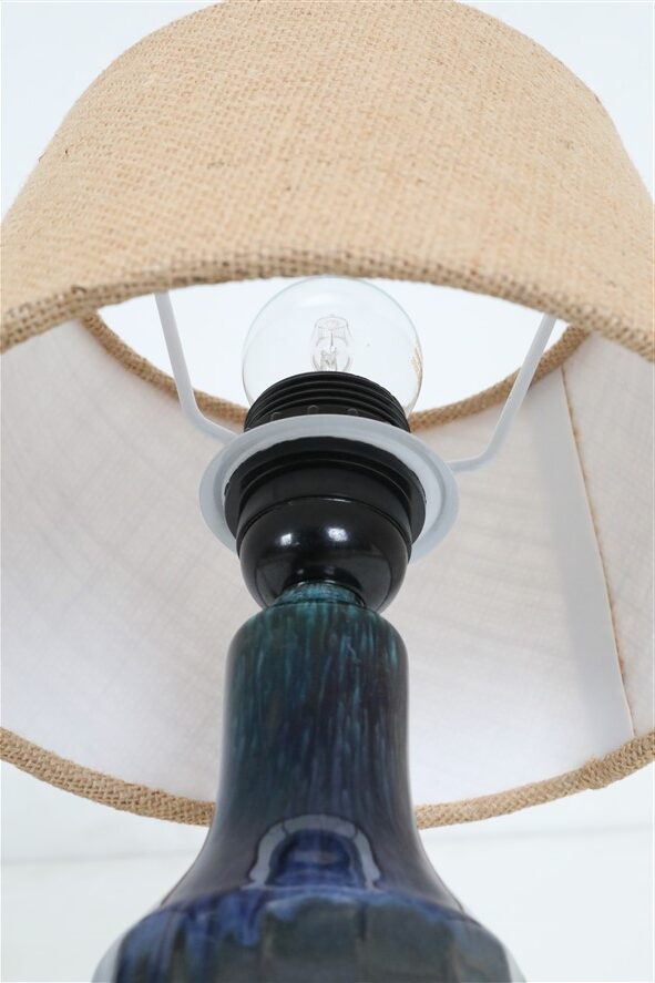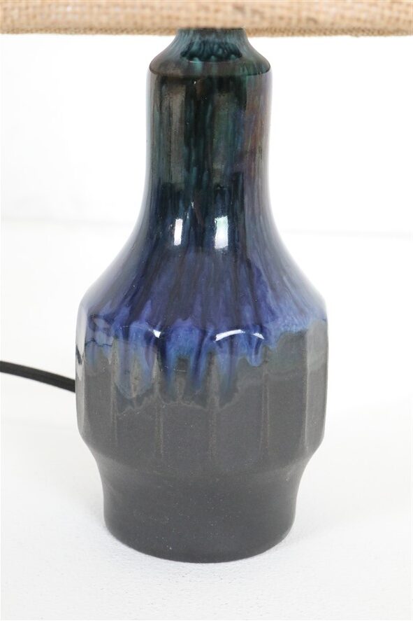 1960er-1970er Jahre, Design: Ernst Nielsen, Faxe, Dänemark, handgearbeitete Keramik. Glasur: matt-schwarz + glänzend-grün-blau. Gesamtmaße mit Lampenschirm: ca. 28 x 20cm (Höhe, Durchmesser). Der Lampenschirm ist erneuert worden. Sehr hochwertiger Jute-Lampenschirm. E27-Bakelit-Fassung (110-250V, weltweit anwendbar), spezielles für Tischleuchten zugelassenes Textilkabel (ca. 1,75m), Schnurschalter (designed by Achille Castiglioni) und Euro-Stecker. Kommt mit 240V-LED-Leuchtmittel in warmweiß. Gebrauchtware. Sehr guter Zustand. Keine Defekte. Nur leichte Gebrauchsspuren. Siehe Fotos. Dies sind die Originalfotos der zum Verkauf stehenden Artikel. Trotzdem können die Farben leicht variieren, da sie auf verschiedenen Geräten / Bildschirmen unterschiedlich dargestellt werden.