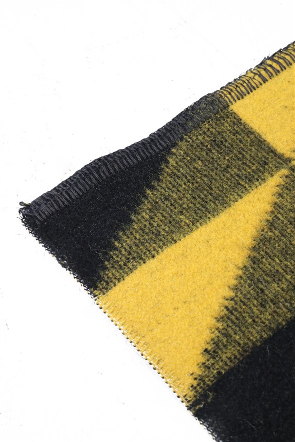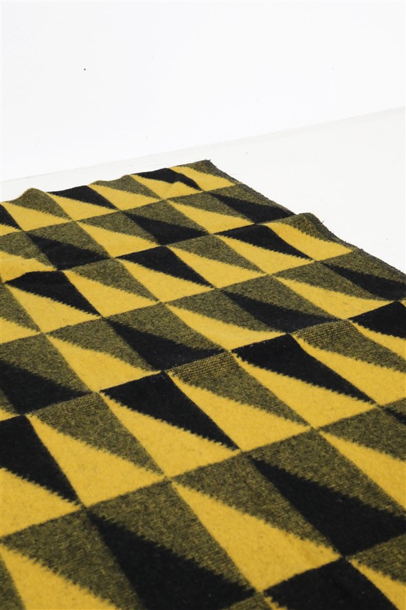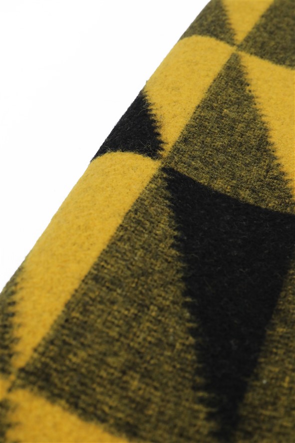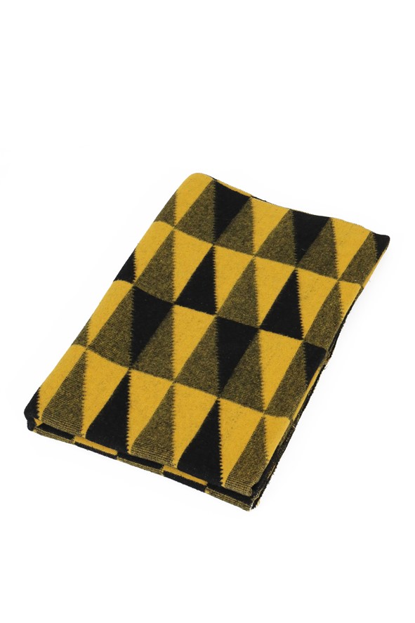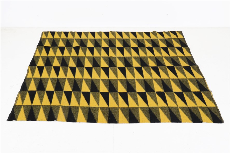 Dänische Mid Century Wolldecke mit grafischem Muster / Danish Modern Design / safran-gelb / schwarz