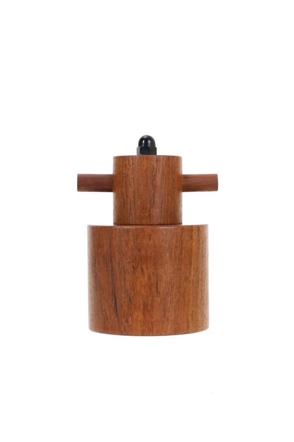 1960er-1970er-Jahre, Dänemark, Pfeffermühle aus massivem Teakholz. Mit sehr hochwertigem Peugeot Mahlwerk. Maße: ca. 10 x 7 x 8cm (Höhe, Tiefe, Breite). Angenehme, geschmeidig-seidenmatte Holzoberfläche. Trotz des Alters sehr guter Zustand. Nur leichte Gebrauchsspuren.