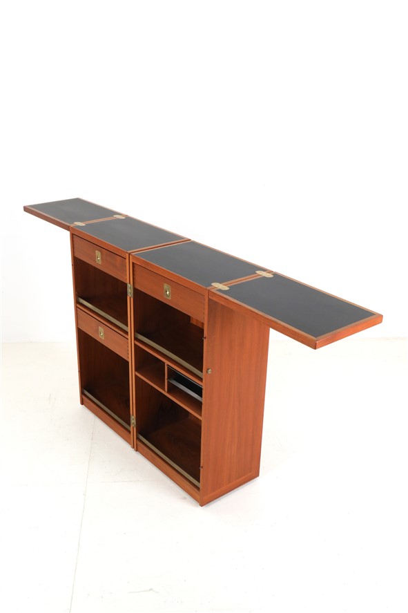 Faltbare „Captain’s Bar“ / Minibar von Reno Wahl Iversen für Dyrlund / Fliptop / Teak / Messing / Linoleum / 60er / 70er-Jahre