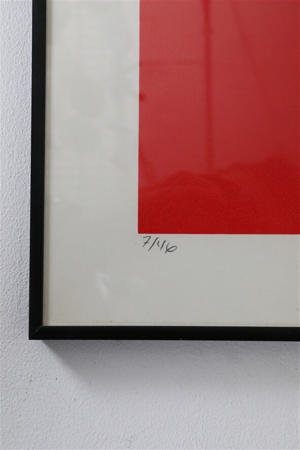 Peder Meinert (geboren 1951 in Dänemark), 1989. Signierte Serigraphie / Siebdruck. Limitiert: 7 von 46. Hochwertiger Nielsen Aluminium-Rahmen, lackiert in schwarz-seidenmatt, Echtglas. Maße mit Rahmen ca. 70x70x2cm (Höhe, Breite, Tiefe). Die zwei weiteren abgebildeten Peder Meinert-Serigrafien auf dem letzten Foto sind nicht Bestandteil dieses Angebots und können zusätzlich erworben werden (solange verfügbar). Gebrauchtware. Nur wenige Alterungs- / Gebrauchsspuren. Die Farben können variieren, da jedes Gerät/Display die Farben anders darstellt.