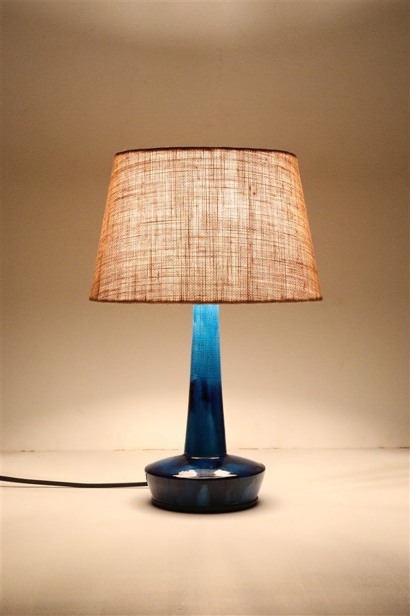 1970er Jahre, Design und Ausführung: Jørgen Holstein, Kopenhagen, Dänemark. Seltenes Stück. Besonders schöne Glasur. Gesamtmaße: ca. 45 x 30cm (Höhe, Durchmesser). Der Lampenschirm wurde erneuert, Bezugsmaterial: Jute. E27-Bakelit-Fassung (110-250V, weltweit anwendbar), Textilkabel (ca. 1,60m), Schnurschalter (designed by Achille Castiglioni) und Eurostecker. Kommt mit sparsamem 230V-LED-Leuchtmittel in warmweiß. Gebrauchtware. Sehr guter Zustand. Keine Defekte. Dies sind die Originalfotos der zum Verkauf stehenden Artikel. Trotzdem können die Farben leicht variieren, da sie auf verschiedenen Geräten / Bildschirmen unterschiedlich dargestellt werden.