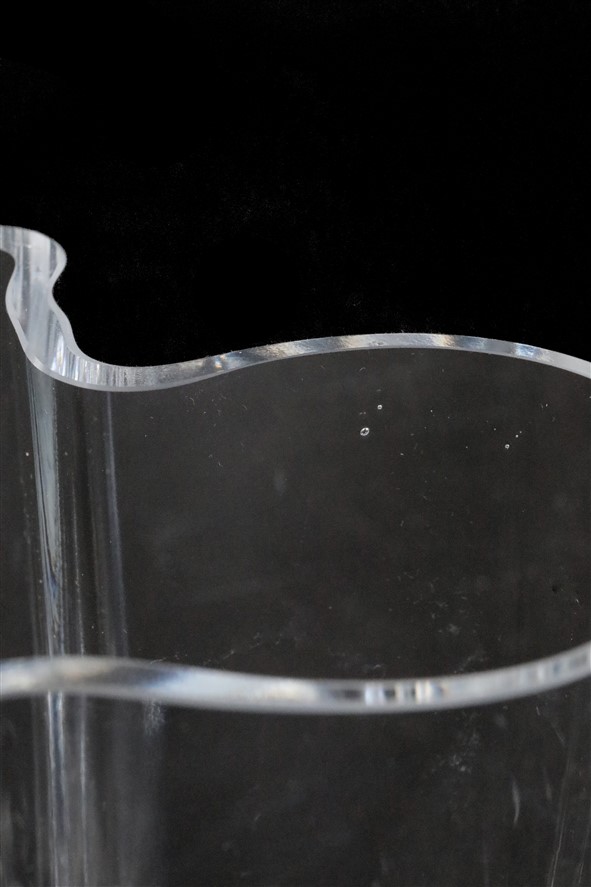 Iittala „Savoy“, Design: Alvar Aalto, 1937, Finnland. Mundgeblasenes Glas. Seltenere Größe. Maße: ca. 12 x 15 x 13,5cm (Höhe, Breite, Tiefe). Gebrauchtware. Keine Defekte. Nur leichte Gebrauchsspuren. Oberflächliche Kratzer am Boden der Vase. Die Farben können variieren, da jedes Gerät/Display die Farben anders darstellt.