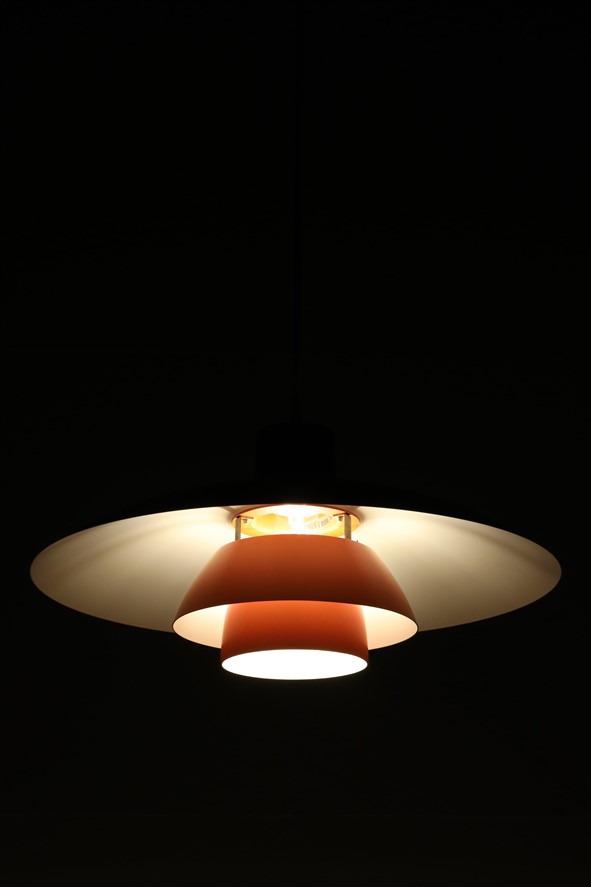 Louis Poulsen / Poul Henningsen „PH 4-3“ Hängeleuchte / rot-orange / Mid Century Danish Modern Design / 70er-Jahre