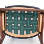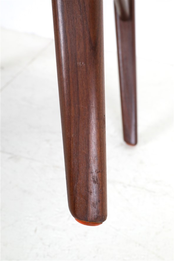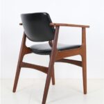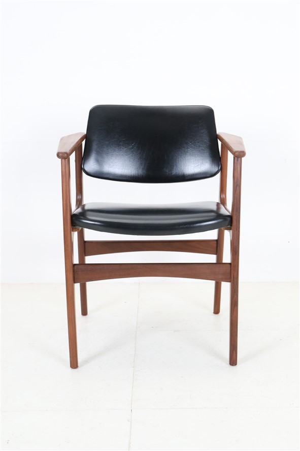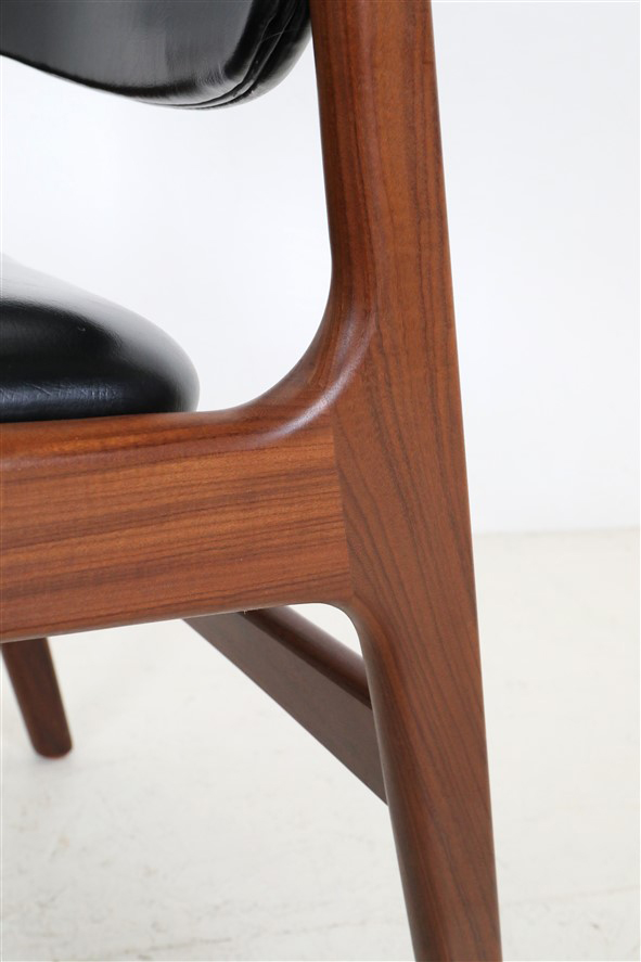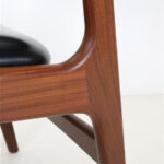 1960er-1970er-Jahre, Dänemark. Design: Arne Vodder. Gestell aus Teakholz. Alle Holzstopfen sind vorhanden. Hochwertig verarbeitet. Originaler schwarzer Skai-Bezug ohne Defekte. Der Polsterschaum und die Polstergurte des Sitzes sind professionell erneuert worden. Sehr bequem! Maße: ca. 79 x 60 x 57cm (Höhe/Breite/Tiefe). Sitzhöhe ca. 47cm. Gebrauchtware. Trotz des Alters nur wenige Gebrauchsspuren. Siehe Nahaufnahmen. Keine Defekte. Dies sind die Original-Fotos der zum Verkauf stehenden Artikel. Trotzdem können die Farben leicht variieren, da sie auf verschiedenen Geräten / Bildschirmen unterschiedlich dargestellt werden.