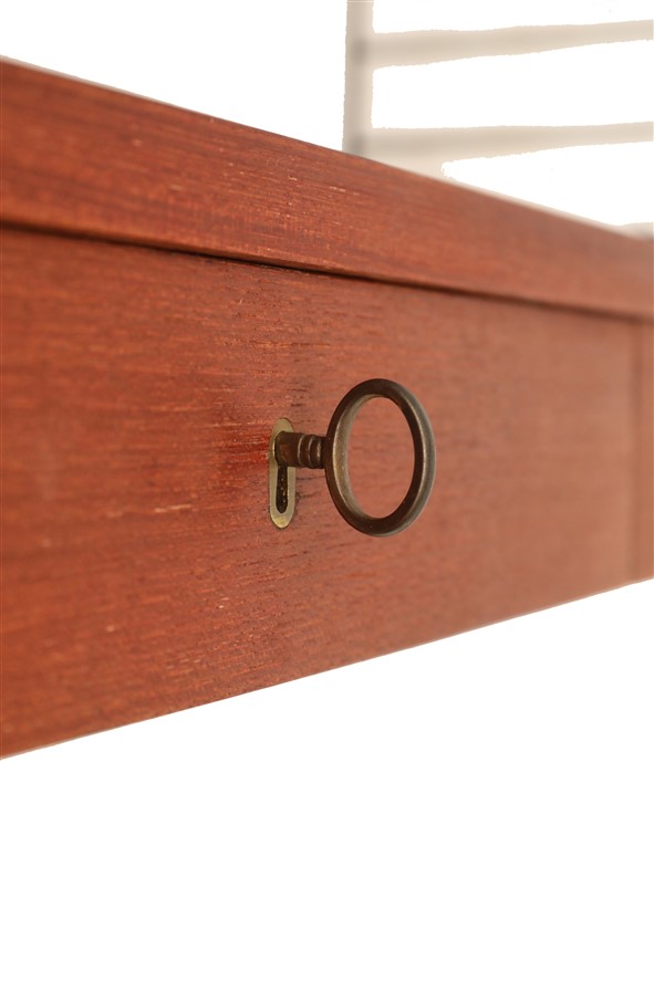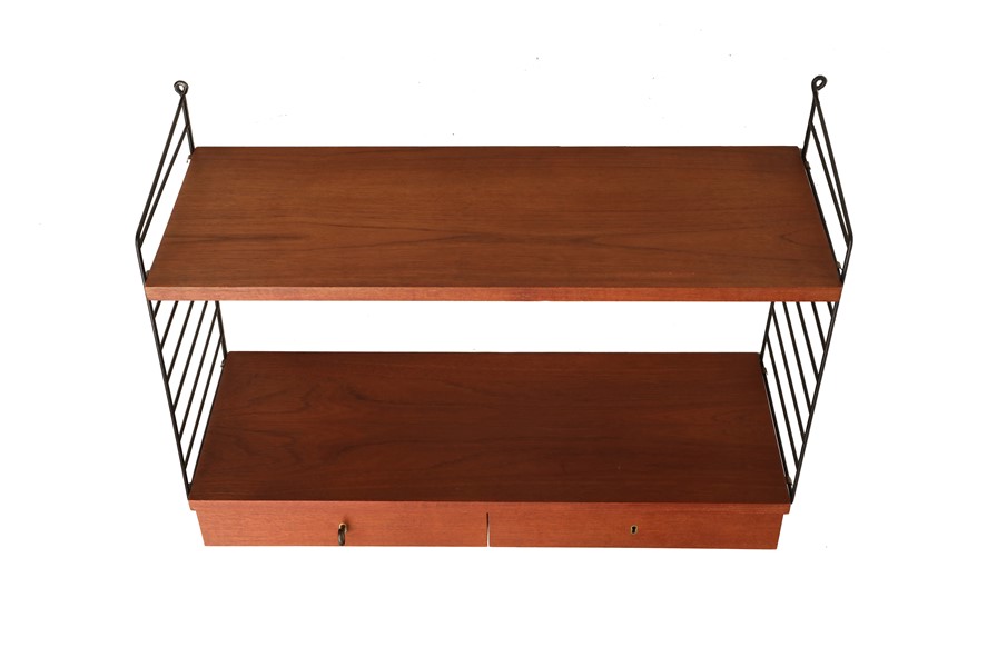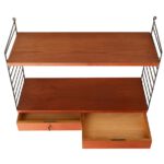 Mid century “String” / Strinning teak shelf / shelving unit with drawers / Wandregal / Regal / black ladders