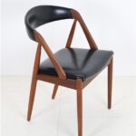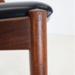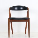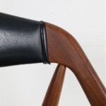 Schou Andersen Møbelfabrik. Modell: 31. Design: Kai Kristiansen, 1957, Dänemark. Sehr hochwertig verarbeitet. Massives Teakholz. Mit Original-Bezug aus schwarzem Skai. Der Sitzschaum und die Polstergurte unter dem Sitz sind professionell erneuert worden. Maße: ca. 75 x 49 x 50cm (Höhe, Breite, Tiefe). Sitzhöhe: ca. 45cm. Gebrauchtware. Trotz des Alters nur leichte Gebrauchsspuren. Siehe Nahaufnahmen. Eine kleine Macke im Skai-Bezug oben an der Kante der Rückenlehne. Keine strukturellen Defekte! Dies sind die Original-Fotos der zum Verkauf stehenden Artikel. Trotzdem können die Farben leicht variieren, da sie auf verschiedenen Geräten / Bildschirmen unterschiedlich dargestellt werden.