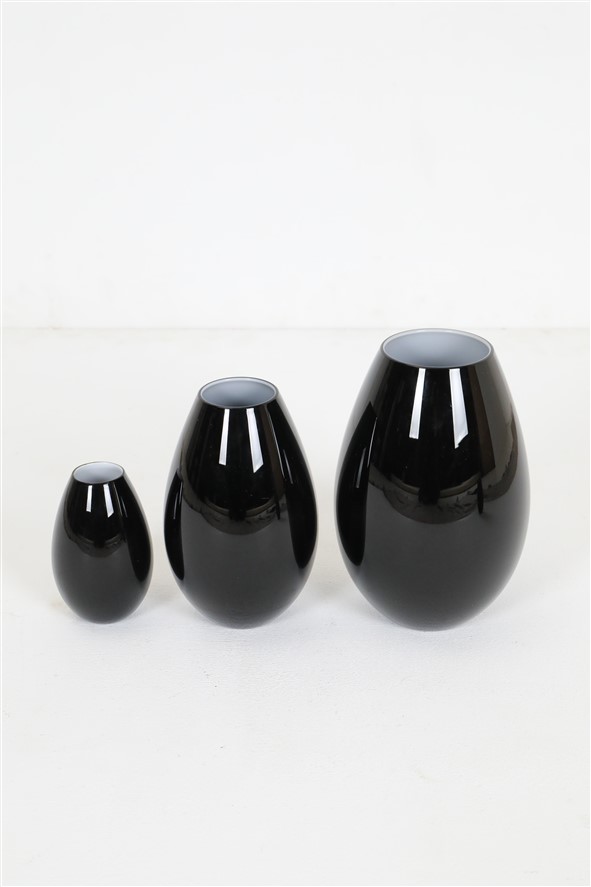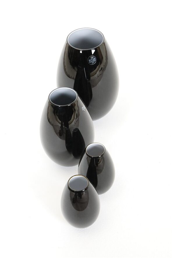 Schwarze Holmegaard / Peter Svarrer „Cocoon“ Glas-Vasen / mundgeblasen / Danish Modern Design