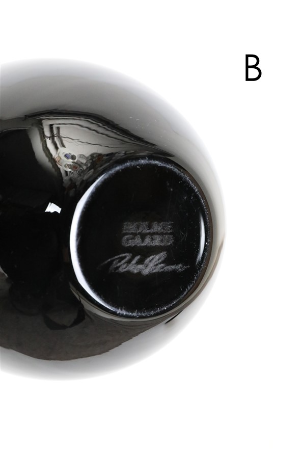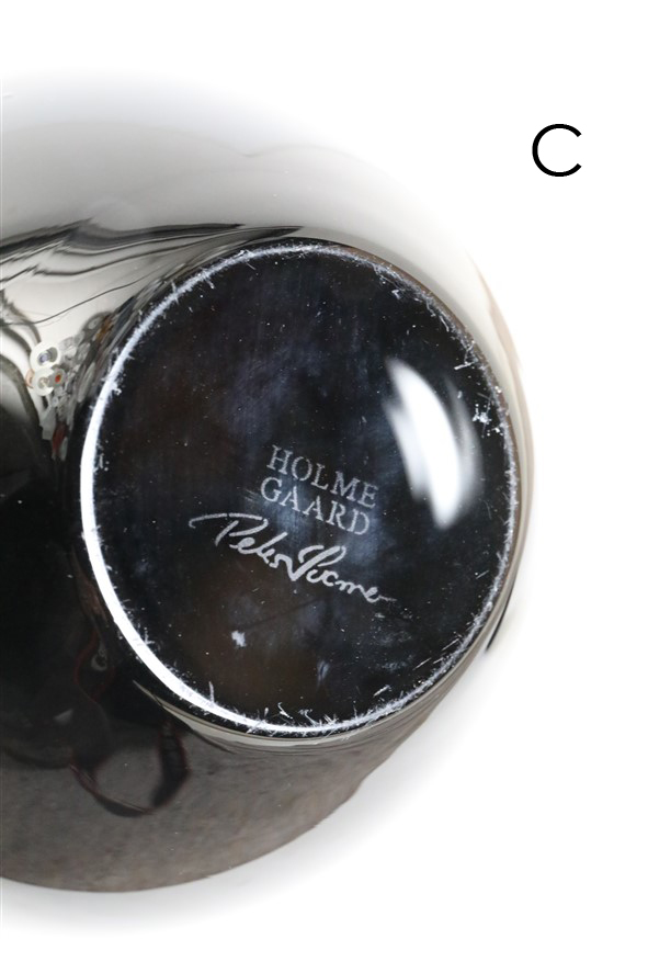 Holmegaard „Cocoon“, schwarz, Design: Peter Svarrer, Dänemark. Mundgeblasenes Glas. In schwarz wird dieses Modell nicht mehr hergestellt. Gebrauchte Sammlerware. Nur leichte Gebrauchsspuren. Keine Defekte.