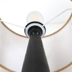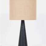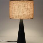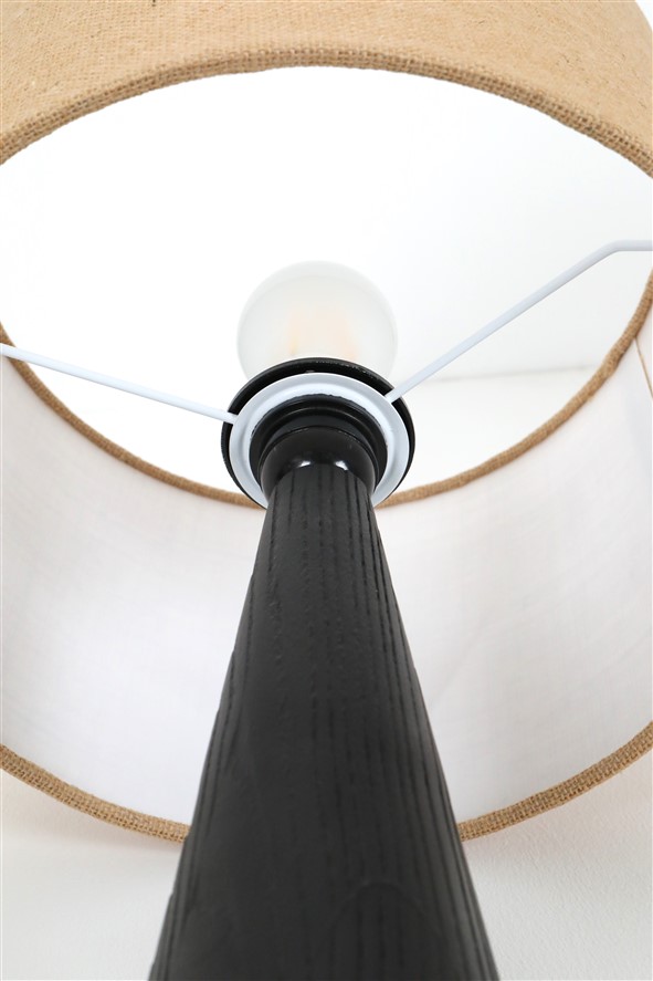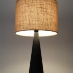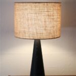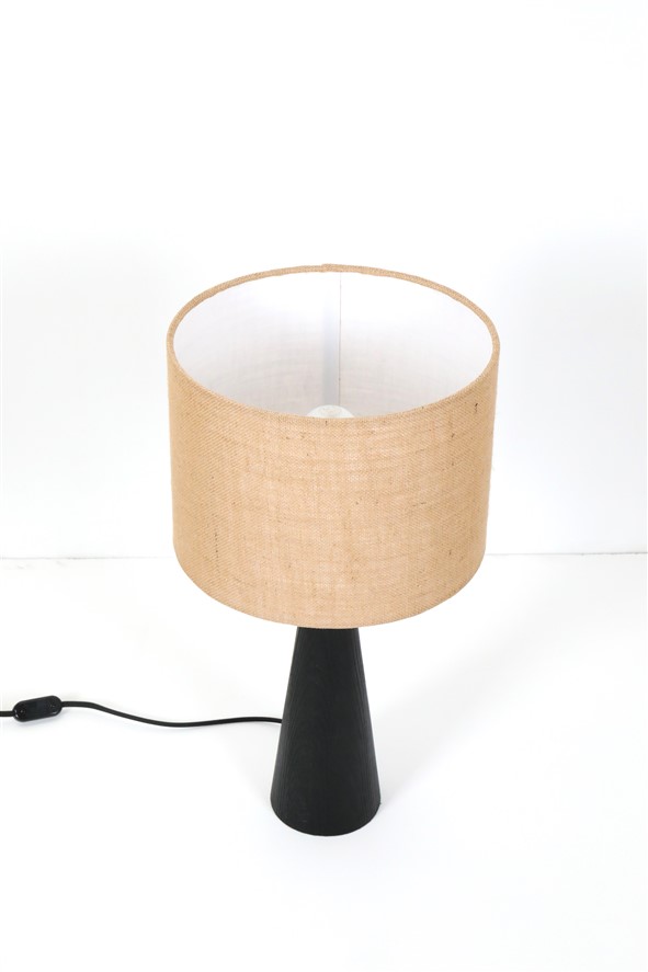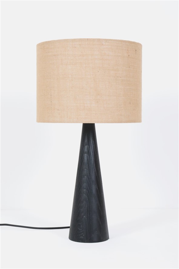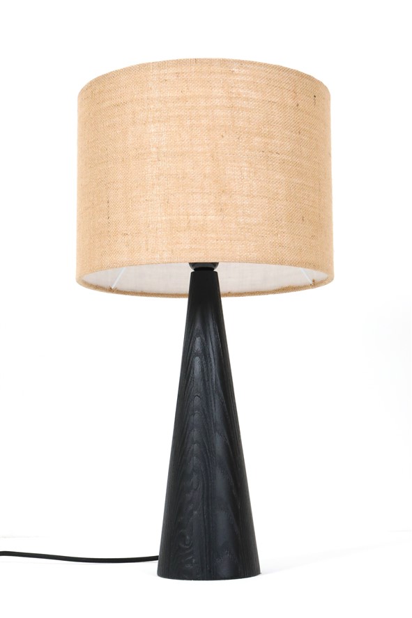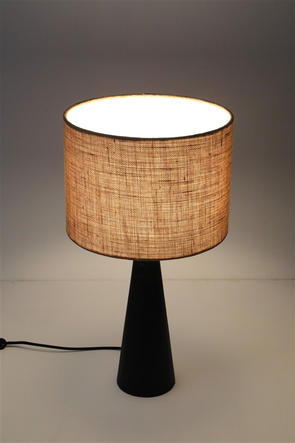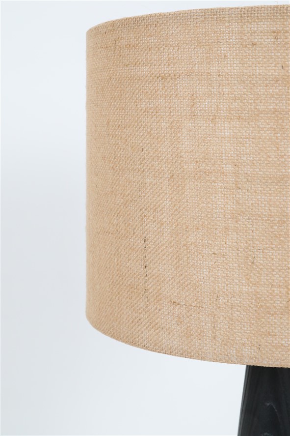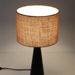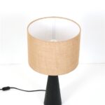 Große schwarze Hustadt Tischleuchte mit Jute-Lampenschirm / mid century modern design