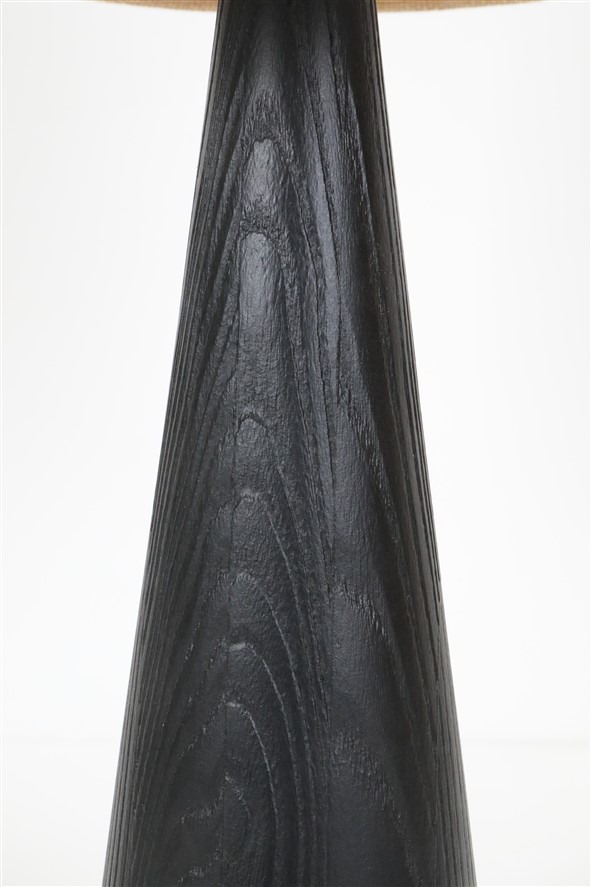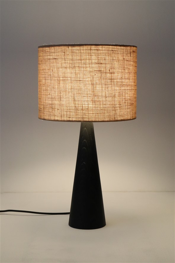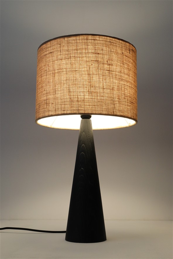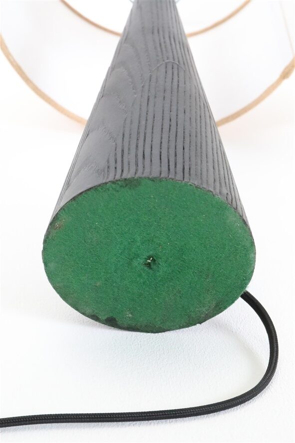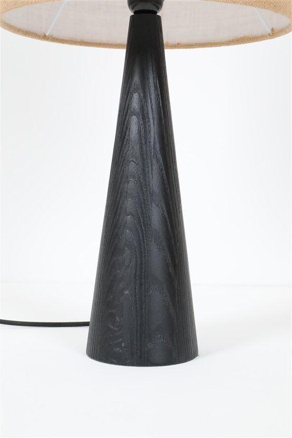 1960er/1970er-Jahre Skjøde, Skjern, Dänemark. Design: Theodor Skjøde Knudsen (1927-2007). Sehr selten. Lampenbasis aus sandgestrahltem, schwarz lackiertem Kieferholz. Die Sandstrahlung betont in besonerem Maß die Holz-Maserung, gibt ihr im wahrsten Sinne des Wortes mehr Tiefe. Mit einem erneuerten, sehr hochwertigen Jute-Lampenschirm. E27-Fassung aus Bakelit (110-250V, weltweit anwendbar), spezielles für Tischleuchten zulässiges Textilkabel (ca. 2,10m), Schnurschalter (Design: Achille Castiglioni) und Euro-Stecker. Gesamtmaße: ca. 56 x 30cm (Höhe, Durchmesser). Gebrauchtware. Keine Defekte. Nur minimale Gebrauchsspuren. Siehe Fotos. Dies sind die Originalbilder der zum Verkauf stehenden Artikel. Trotzdem können die Farben leicht variieren, da sie auf verschiedenen Geräten / Bildschirmen unterschiedlich dargestellt werden.