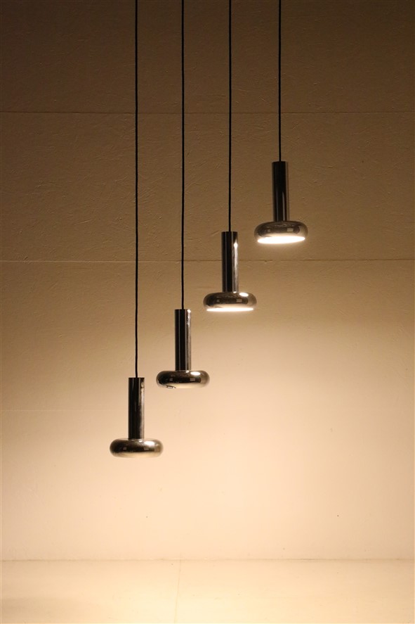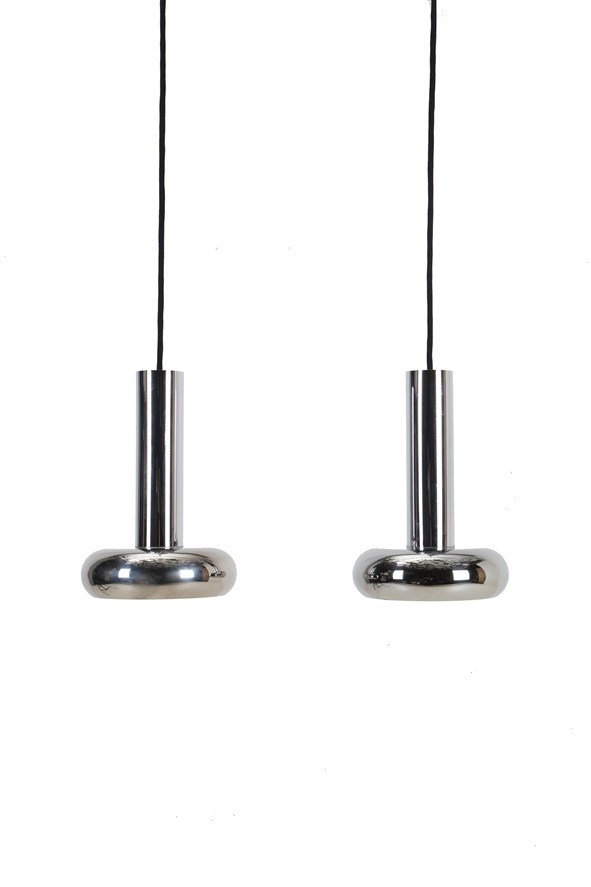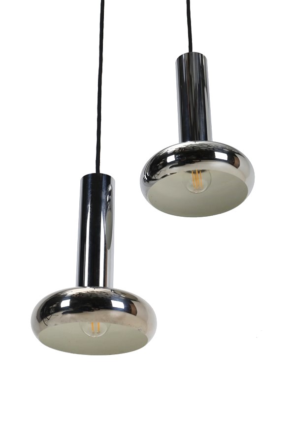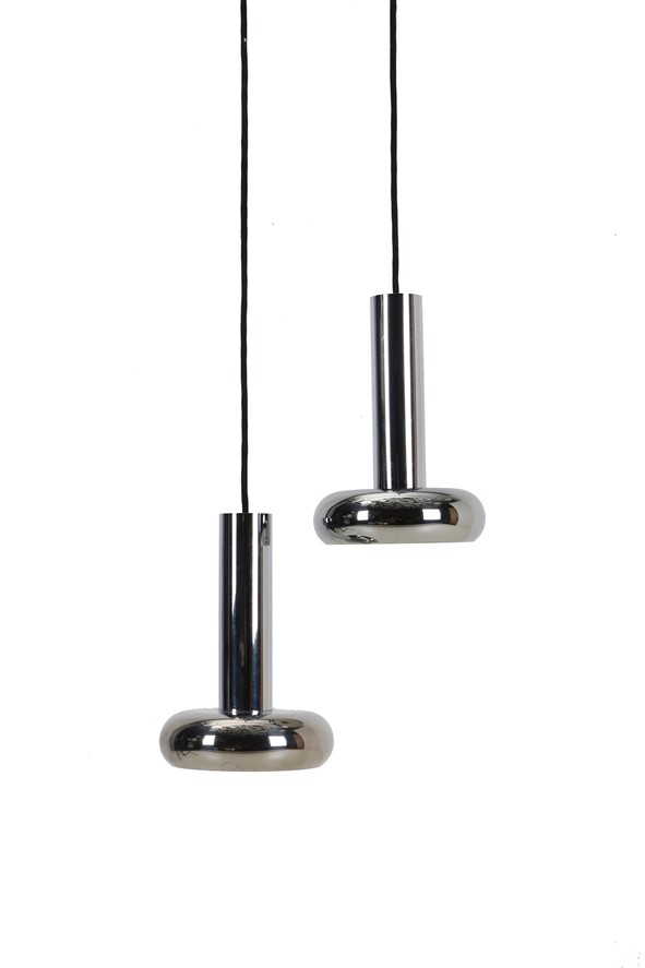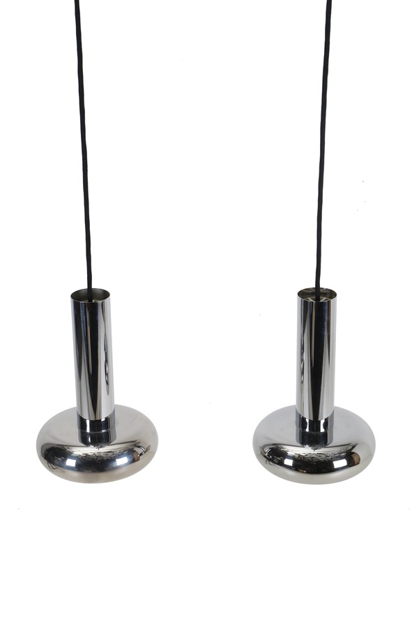 Space Age Chrom-Hängeleuchten / Mid Century Modern Design / 60er / 70er-Jahre / 2er-Set