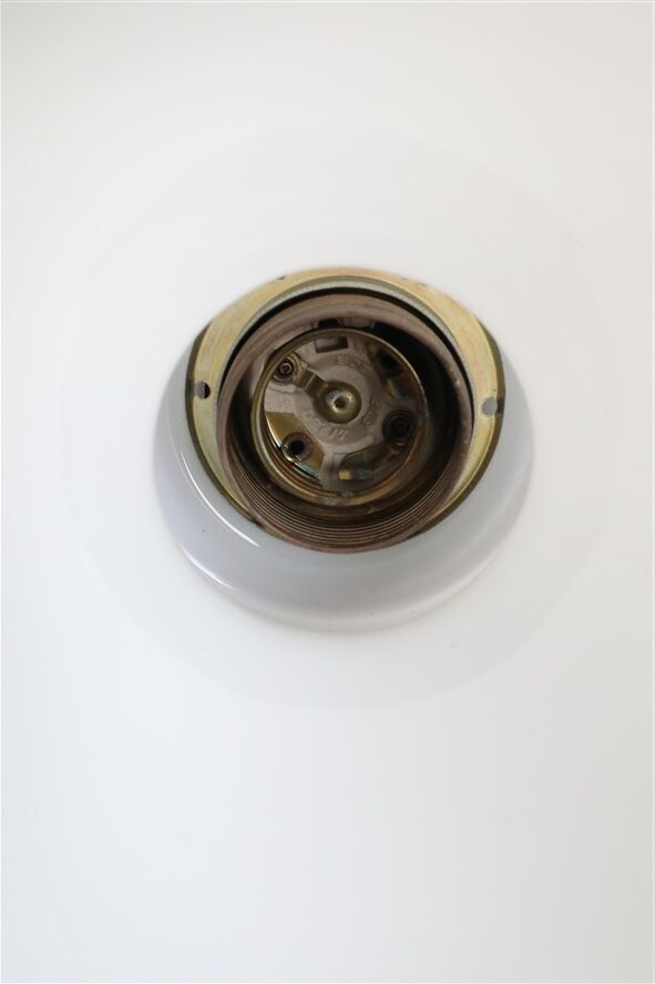 1960er-Jahre, Dänemark. Materialien: Handgearbeitetes Opalglas (erzeugt angenehm weiches Licht), Teakholz. Maße: ca. 28 x 17,5cm (Höhe, Durchmesser). E27-Fassung aus Messing und Keramik (ich empfehle die Nutzung von modernen LED-Glühbirnen), 110-250V, weltweit anwendbar. Kommt mit hochwertigem, weichem Textilkabel (ca. 2,40m), warmweißer LED-Glühbirne (230V), Zugentlaster zur Deckenmontage und Baldachin. Gebrauchtware. Angesichts des Alters sehr guter Zustand. Keine Defekte. Nur minimale Alterungs-/Gebrauchsspuren. Siehe Nachaufnahmen. Dies sind die Originalbilder der zum Verkauf stehenden Artikel. Trotzdem können die Farben leicht variieren, da sie auf verschiedenen Geräten / Bildschirmen unterschiedlich dargestellt werden.