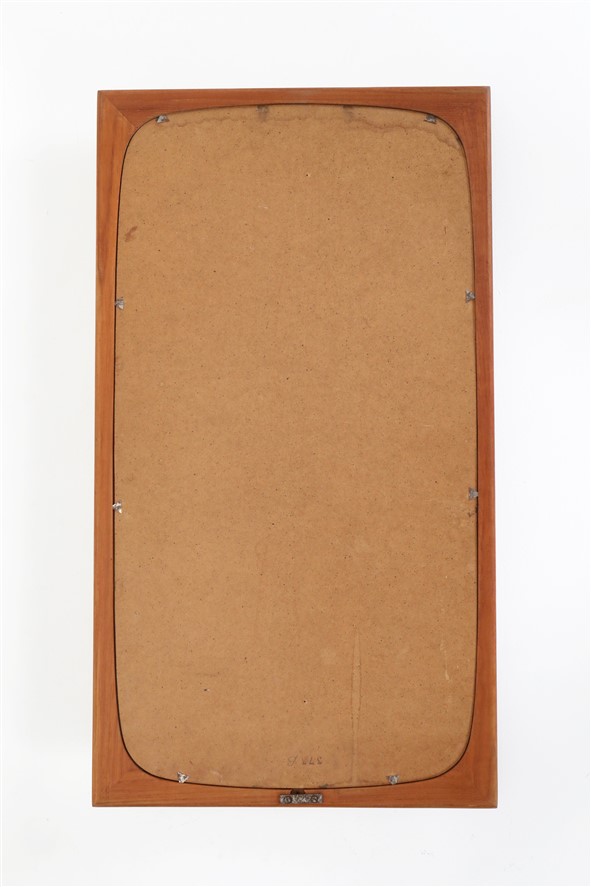 Dänischer Wandspiegel. 1960er/1970er-Jahre. Hochwertig verarbeitet. Restaurierter massiver Teakholz-Rahmen. Angenehme, geschmeidig-seidenmatte Holzoberfläche. Das Spiegelglas ist professionell erneuert worden. Gesamtmaße: ca. 70 x 39 x 1,2cm (Höhe, Breite, Tiefe). Sehr guter Zustand. Gebrauchtware. Die Farben können variieren, da jedes Gerät/Display die Farben anders darstellt.
